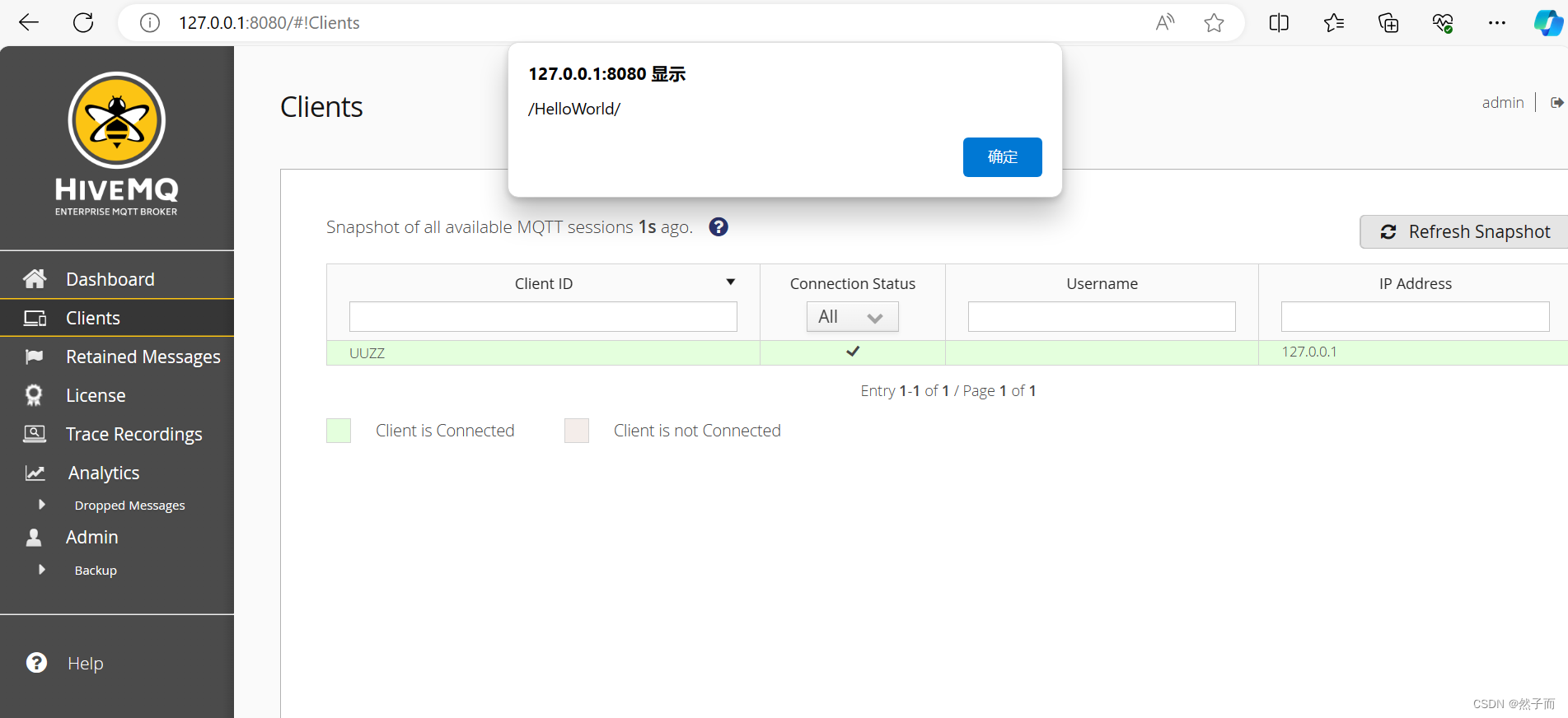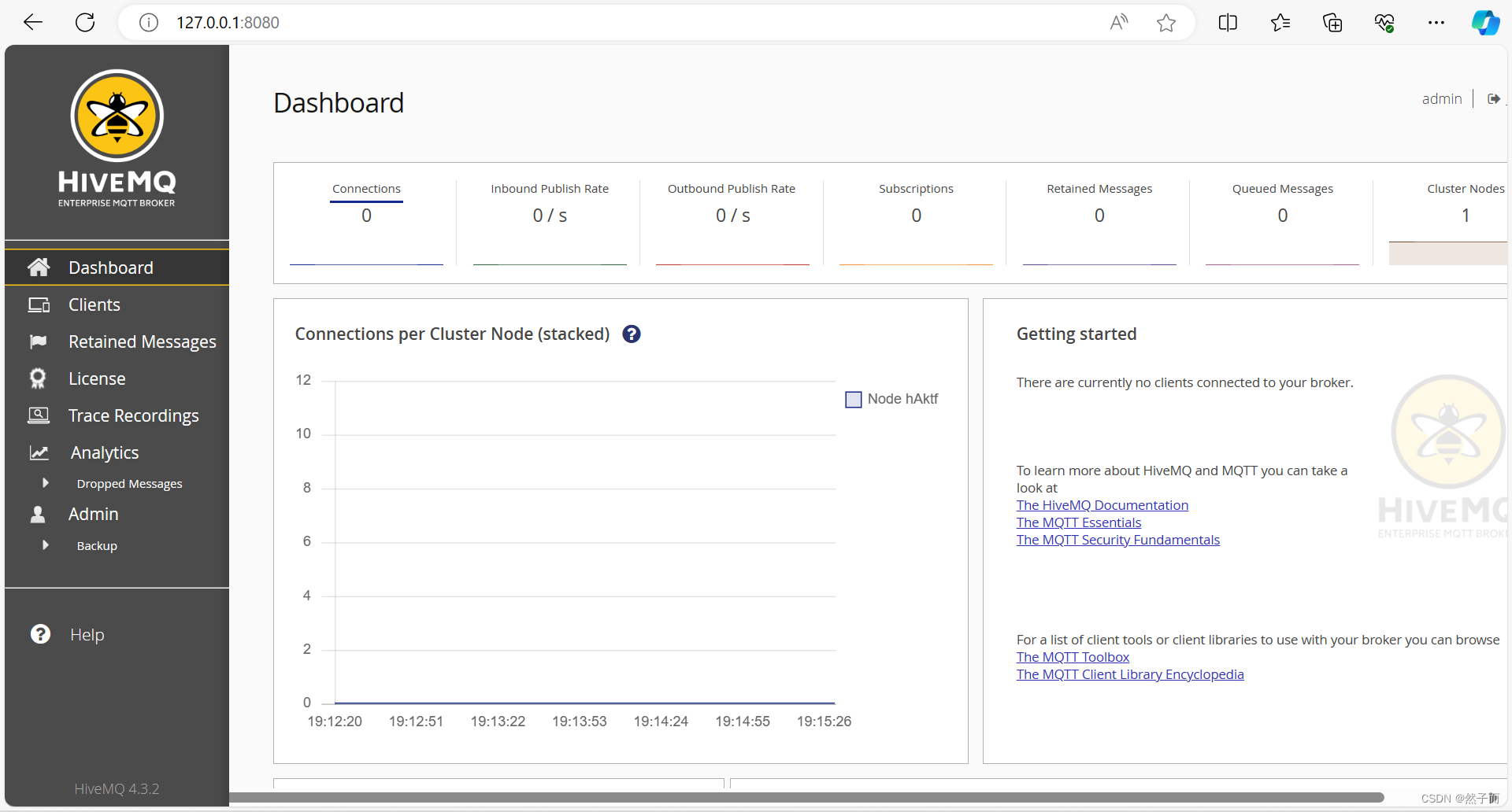 我们输入账号和密码分别是:admin和hivemq,登录进入如下图所示: