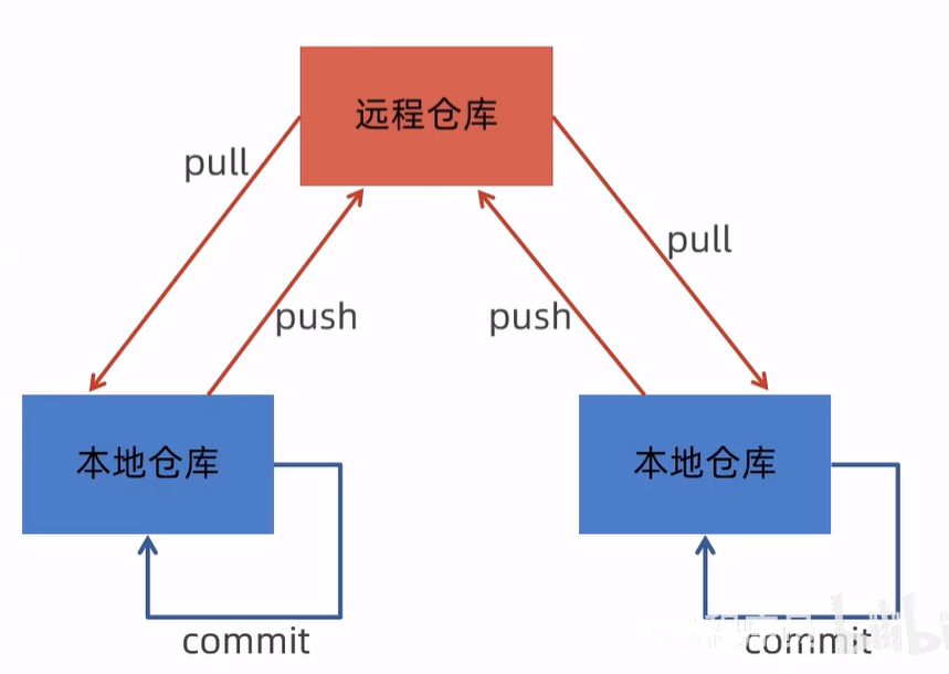 - pull:拉取,将远程仓库文件和版本信息下载到本地仓库