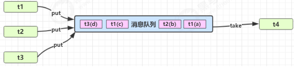 - 用一把锁,同一时刻,最多只允许有一个线程(生产者或消费者,二选一)执行