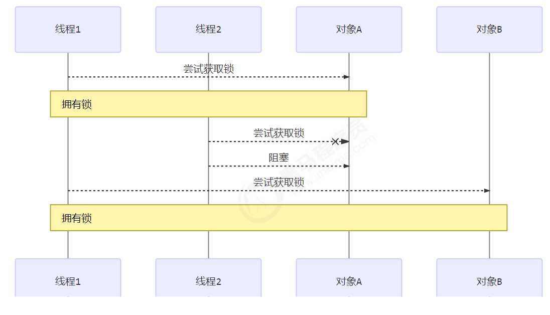- 当节点总数等于 2 时(即一个 dummy 节点,一个正常节点)这时候,仍然是两把锁锁两个对象,不会竞争