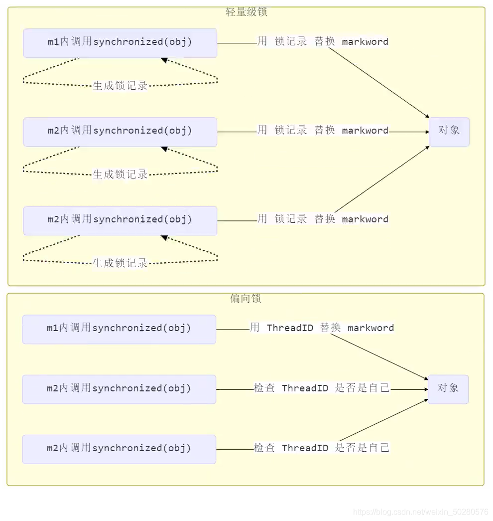 - 两把【锁】,同一时刻,可以允许两个线程同时(一个生产者与一个消费者)执行