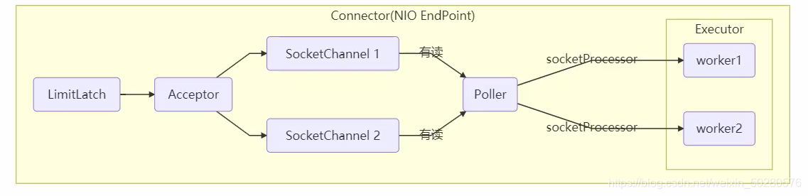 例如之前讲的 Tomcat 的 Connector 结构时,Acceptor 作为生产者向 Poller 消费者传递事件信息时