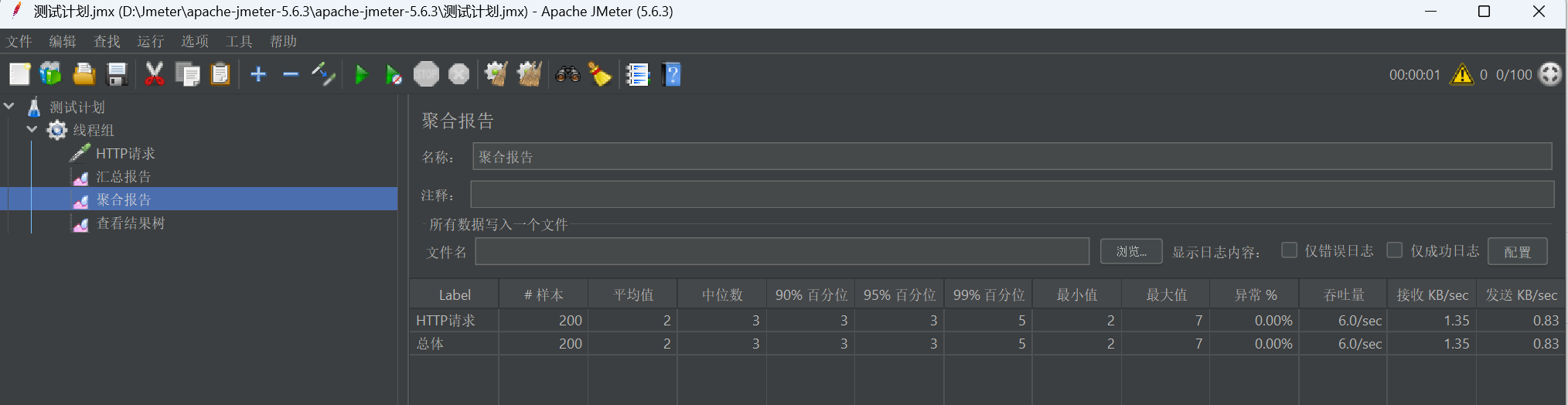 - Summary Report(汇总报告) → 吞吐量、平均响应时间